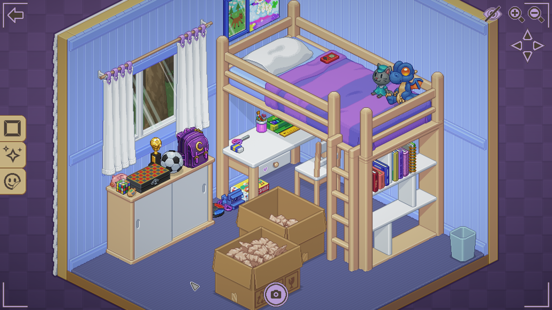引っ越し先で荷ほどきした生活用品を各部屋の各スペースに配置していくシンプルなポイント&クリックゲームです。